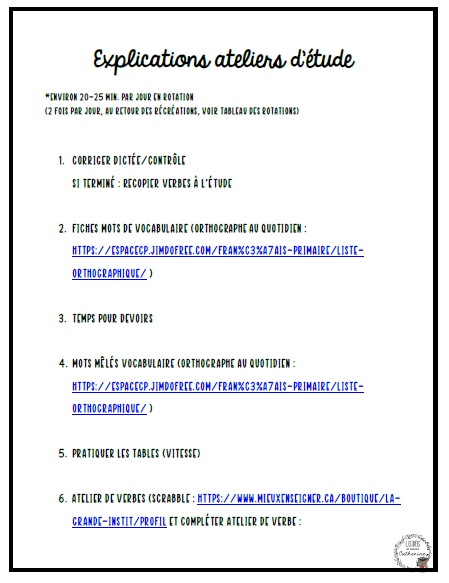 Voici un document que je vous propose pour organiser vos périodes d'étude en classe.