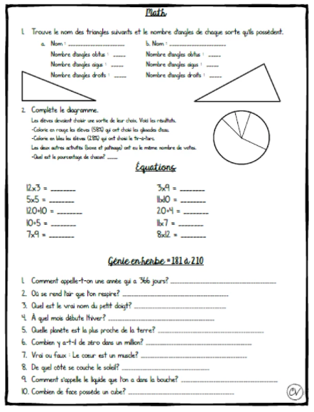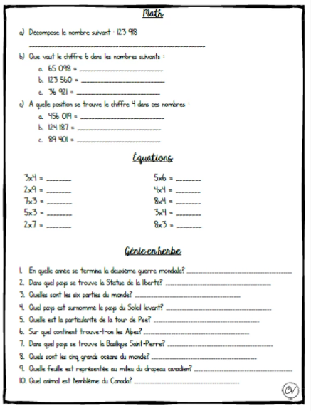Voici 21 contrôles faits en 6e année selon les notions enseignées en français, mathématiques et génie en herbe - document disponible sur mon site.