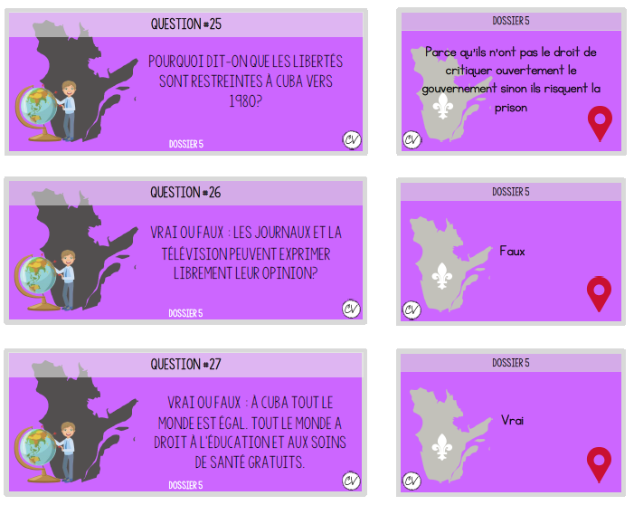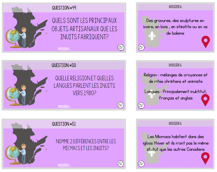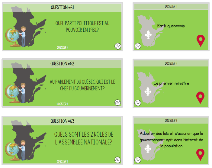 Ce jeu contient 63 questions avec réponses pour le dossier 4 et 51 questions avec réponses pour les dossiers 5 et 6. Vous pouvez varier les façons de l'utiliser!